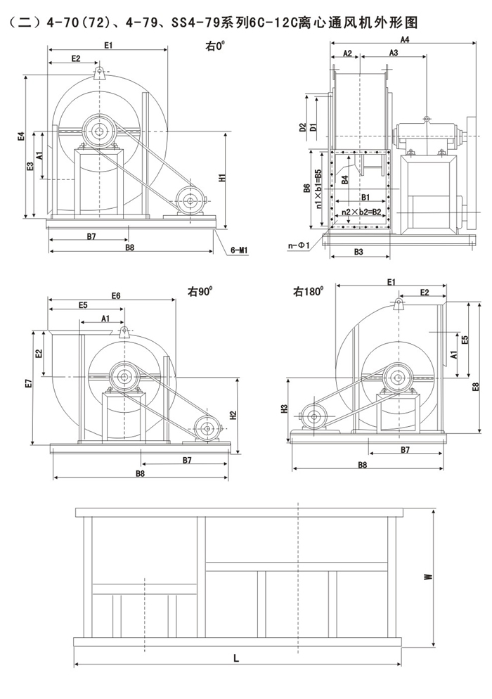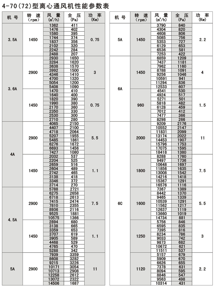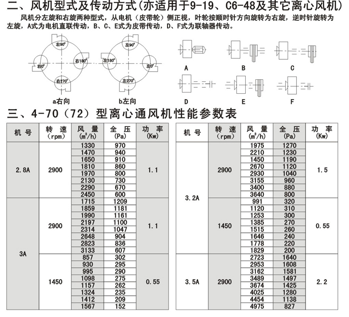 注:F4-72/79为防腐型离心风机,用于输送有腐蚀性的气体,用玻璃钢为制作材料。